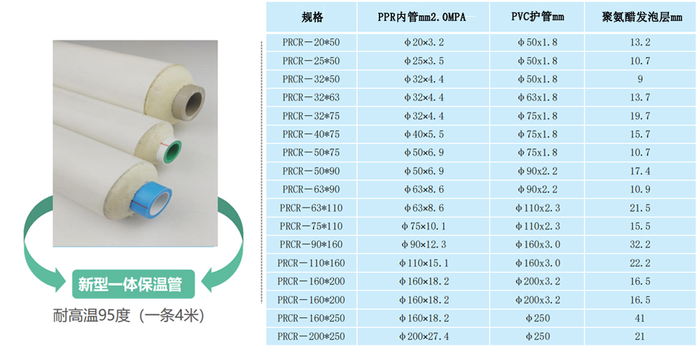 新型PPR保溫管采用聯(lián)塑PPR熱水內(nèi)芯管+聚氨酯發(fā)泡保溫層+PVC(PE)外套保護層,三層緊密閉合,中間無縫隙、無空氣層,保溫效果極優(yōu)。